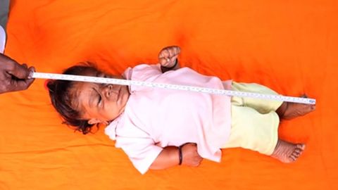 Manpreet Singh tiene 23 años pero su apariciencia es la de un bebé de meses debido a una rara enfermedad