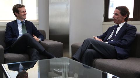 Aznar ha vuelto a la sede nacional de los populares después de más de dos años y tras haber renunciado en el año 2016 a la Presidencia de honor de la formación. Casado ha decidido citar al expresidente en su despacho después del encuentro que mantuvo este lunes con Mariano Rajoy en el mismo lugar y que tuvo una duración de alrededor de una hora y media.