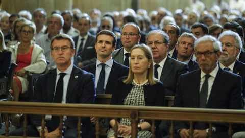 La presencia del líder conservador tampoco pasó desapercibida para la curia compostelana. El deán de la catedral, Segundo Pérez, se paró a su altura durante una breve procesión con la que terminaba el acto litúrgico para darle la enhorabuena, y monseñor Julián Barrio intercambió unas palabras tras invitarlo a pasar al patio del palacio arzobispal.