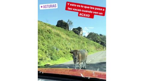 Parece ser que la presentadora se encuentra estos días de ruta por el oriente asturianos. Esta mañana compartía con sus seguidores varios vídeos en los que una vaca interrumpe su subida al Fitu, en Colunga.