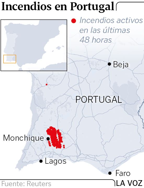 «Nunca estuvieron tantos efectivos en una operación de este tipo», subrayó Cabrita, quien consideró «muy positivo» que el fuego del Algarve sea el único «significativo» actualmente en Portugal, afectado por una ola de calor que ha llevado a registrar 45 grados centígrados en varios puntos del país en los últimos días.
