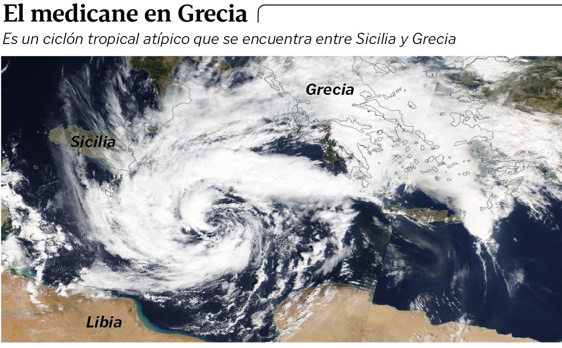 La fuerza que ha ido ganando este ciclón tropical puede estar relacionada con las aguas tan cálidas que hay en el mar Mediterráneo, con anomalías positivas que durante los últimos meses han llegado hasta los cuatro grados sobre los valores habituales. En agosto se midieron temperaturas de 30 grados, cifras más propias de las regiones tropicales que de las latitudes medias. La intensa evaporación que genera un agua tan caliente representa uno de los mecanismos que intervienen en la formación de estos ciclones. Eso explicaría la particularidad que presente Jenofonte. Algunos de los modelos indican que podría tocar tierra con vientos sostenidos por encima de los 119 kilómetros por hora, propios de un huracán de categoría 1. El temporal ya ha comenzado en el sur de Grecia, donde se ha activado un aviso naranja por fuertes rachas de viento. Este fin de semana afectará a Sicilia, que también ha activado la alerta máxima.