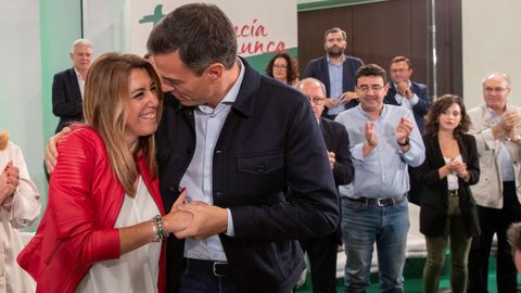 La guerra entre Sánchez y Díaz viene de muy atrás, pero alcanzó su punto álgido en las primarias del 2016 en las que contra todo pronóstico, el madrileño recuperó la secretaría general de Ferraz obligando a la presidenta de la Junta a replegarse a sus dominios. Las distancias entre ambos son insalvables, aunque ayer Sánchez le confió su apoyo personal, el del partido y, en lo que pareció un derrape dialéctico, hasta el del mismísimo Gobierno: «Estoy contigo. Estamos contigo. Me tienes a mí. A todo el Gobierno y a todo el partido atrás. A tu lado, acompañando con todo el cariño, generosidad y compromiso, con fuerza para que vuelvas a ganar», dijo el jefe del Ejecutivo en el acto de proclamación de su candidata en un intento de cerrar las muchas heridas que todavía hay abiertas, al menos de cara al electorado. A petición de Díaz, Sánchez apenas participará en los actos de campaña.