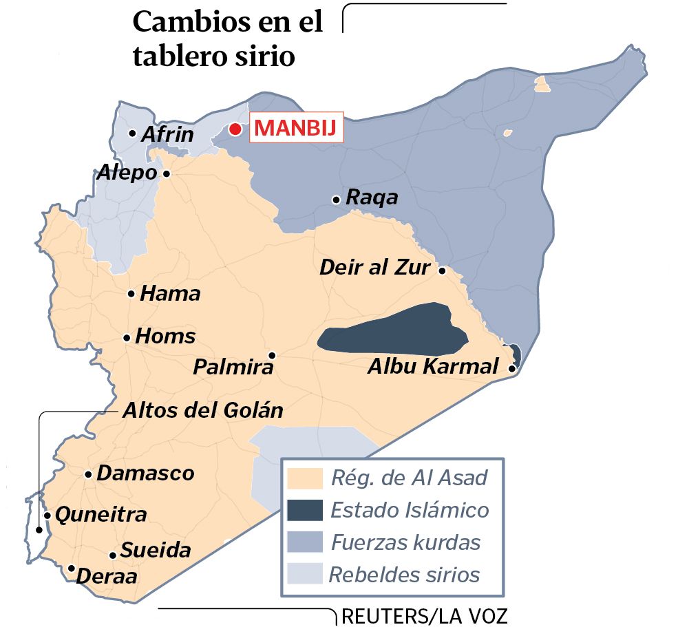 29 dic 2018 . Actualizado a las 08:45 h.La decisión tomada hace diez días por Donald Trump de retirar las tropas estadounidenses de Siria cambió el curso de la guerra. Estados Unidos optó por dejar en manos de Rusia, Irán y Turquía el futuro de ese país de Oriente Medio, y traicionar de paso a los kurdos, sus más fieles aliados en la lucha contra el Estado Islámico (EI). Ante la amenaza de una inminente ofensiva turca, la milicia kurda Unidades de Protección Popular (YPG) ha decidido echarse en manos de Bachar al Asad y entregarle la estratégica ciudad de Manbij, que alberga uno de los cuarteles de las fuerzas especiales estadounidenses.