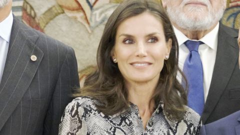 09 oct 2019 . Actualizado a las 08:46 h.La reina ha vuelto a confiar en la moda gallega para uno de sus actos oficiales. En concreto, Letizia Ortiz recuperó un vestido de Massimo Dutti de la temporada pasada pero cuyo diseño en animal print es una de las tendencias de este otoño. Se trata de un vestido camisero con estampado de pitón que la reina ya ha usado en otras ocasiones, como durante la visita oficial del presidente de Perú. Letizia lució junto a Felipe VI, en un acto celebrado en el Palacio de la Zarzuela, el pelo suelto y ligeramente ondulado en las puntas, unos pequeños pendientes de diamantes y unos zapatos en color camel que le daban otro toque diferente al estilismo.