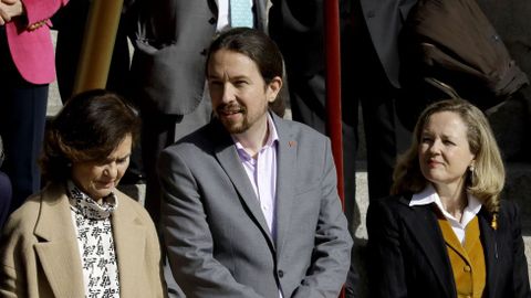 El secretario general de Podemos, con el inquebrantable apoyo de la ministra de Empleo, Yolanda Díaz, se fajó para que el Gobierno comprometiese ayudas públicas a todos los ciudadanos, especialmente a los trabajadores y sectores más desfavorecidos, en un lote de medidas que bautizaron y promocionaron bajo el nombre de escudo social. Al otro lado de la mesa, Carmen Calvo, que venía de protagonizar un choque con Iglesias a raíz de la ley de integridad sexual, se decantó por la visión más realista aportada por la vicepresidenta económica, Nadia Calviño, y la portavoz del Gobierno y ministra de Hacienda, María Jesús Montero, que coincidían en la importancia de proteger a los trabajadores, pero que advertían de la necesidad de trabajar con números realistas y sobre el peligro de disparar la deuda hasta límites que pudiesen volver a poner a España bajo la amenaza del rescate.