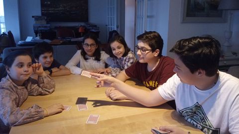 «La verdad es que juegan bastante entre ellos sin pelearse. Ahora que no hay tanta tarea se pasan mucho tiempo jugando todos a las cartas con el padre. Yo soy funcionaria y sigo teletrabajando, así que no puedo ponerme. Pero a ellos les encanta jugar a las siete y media y a la pocha. La verdad es que con eso lo pasan muy bien», asegura. Una de las hijas mayores ha encontrado su pasión haciendo bolsos con trapillo y los pequeños suelen entretenerse haciendo fuertes con los clics de Playmobil o pintando. No tienen jardín ni terraza. Pero sí balcones. «Una curiosidad es que hemos cambiado de balcón para salir a aplaudir, porque resulta que tenemos uno que da hacia una calle en la que un vecino toca el saxo, entonces salimos hacia ahí para escucharle», cuenta la madre. Ella señala que, aunque suene raro, han reducido las horas de tele. Y no lo hicieron porque no se pusiesen de acuerdo sobre el canal. «Se nos colaban demasiadas noticias sobre el coronavirus y no nos gustaba», manifiesta Cristina Peleteiro.