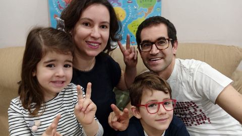 Cuatro semanas después de decretarse el confinamiento, en la casa de Alejandra Saavedra Faraldo y Luis Dopazo Fernández, que viven con sus niños Javier y María, de 6 y 4 años, se mantienen con mucha energía. Los niños ya se han acostumbrado a no salir de casa, ni lo piden, de hecho. Y mientras, los padres se organizan para mantenerlos ocupados el mayor tiempo posible, sin renunciar a los juegos para que puedan hacer ejercicio. «A veces me veo como una mujer orquesta», bromea Alejandra, que explica que diariamente trata de organizar actividades didácticas para que los pequeños no pierdan del todo la rutina del cole, dedicando además una gran parte del día a juegos que se inventa, y con los que pretende que ellos se muevan. «Hacemos guerras de almohadas, jugamos a llevar los muñecos de un lado a otro, organizamos carreras de sacos», afirma, reconociendo que en esta semanas «he relajado mucho las normas». Y lo explica: «si no se hacen las camas un día no pasa nada, y si hay que deshacerlas para jugar, pues lo hacemos, lo que me importa más es que se muevan todo lo posible, hemos hecho del pasillo nuestra zona de juegos, porque así están más contentos y duermen mejor».