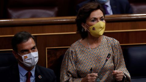 La 'número dos' del Ejecutivo ha puesto de relieve que la Ley de Memoria «mejora, refuerza y dignifica» la democracia pero también «repara» a las víctimas de un período «trágico e ignominioso» del país, como fue «el golpe de estado contra la España constitucional, la dictadura de Franco, la represión y el exilio».