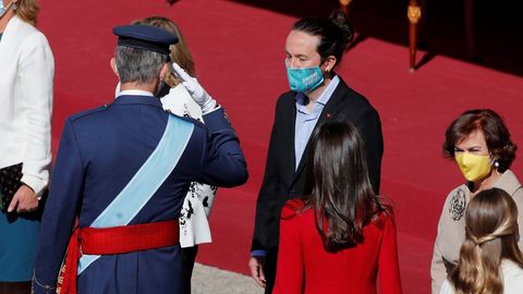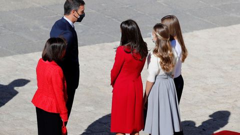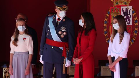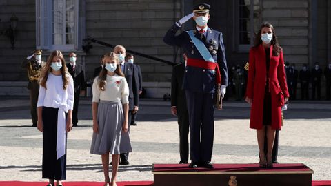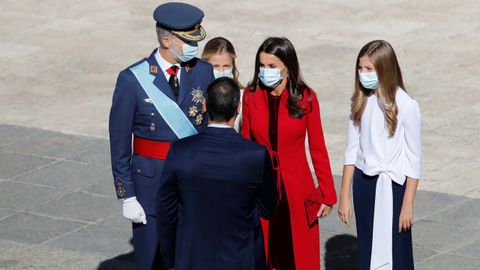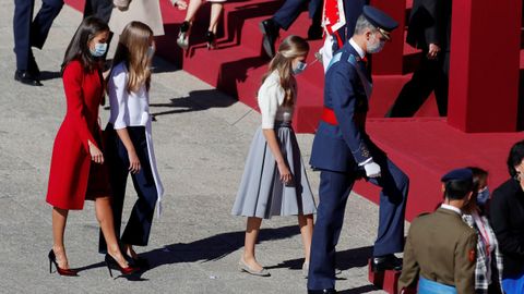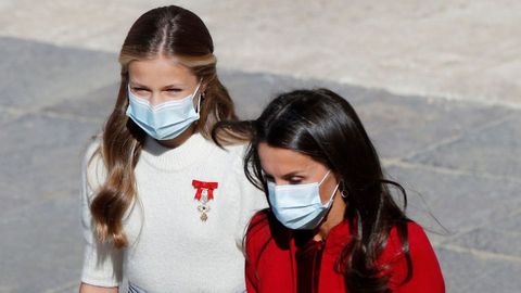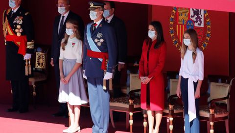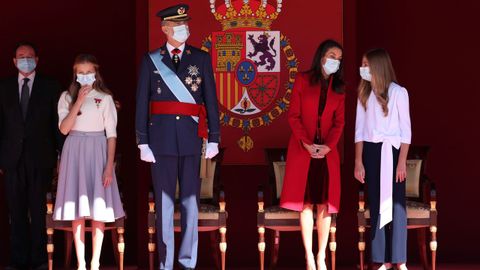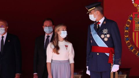 A pesar de llevar las correspondientes mascarillas, se han visto varios momentos de gran complicidad entre la princesa Leonor y su padre, ya que por protocolo ella se ha situado a su izquierda.