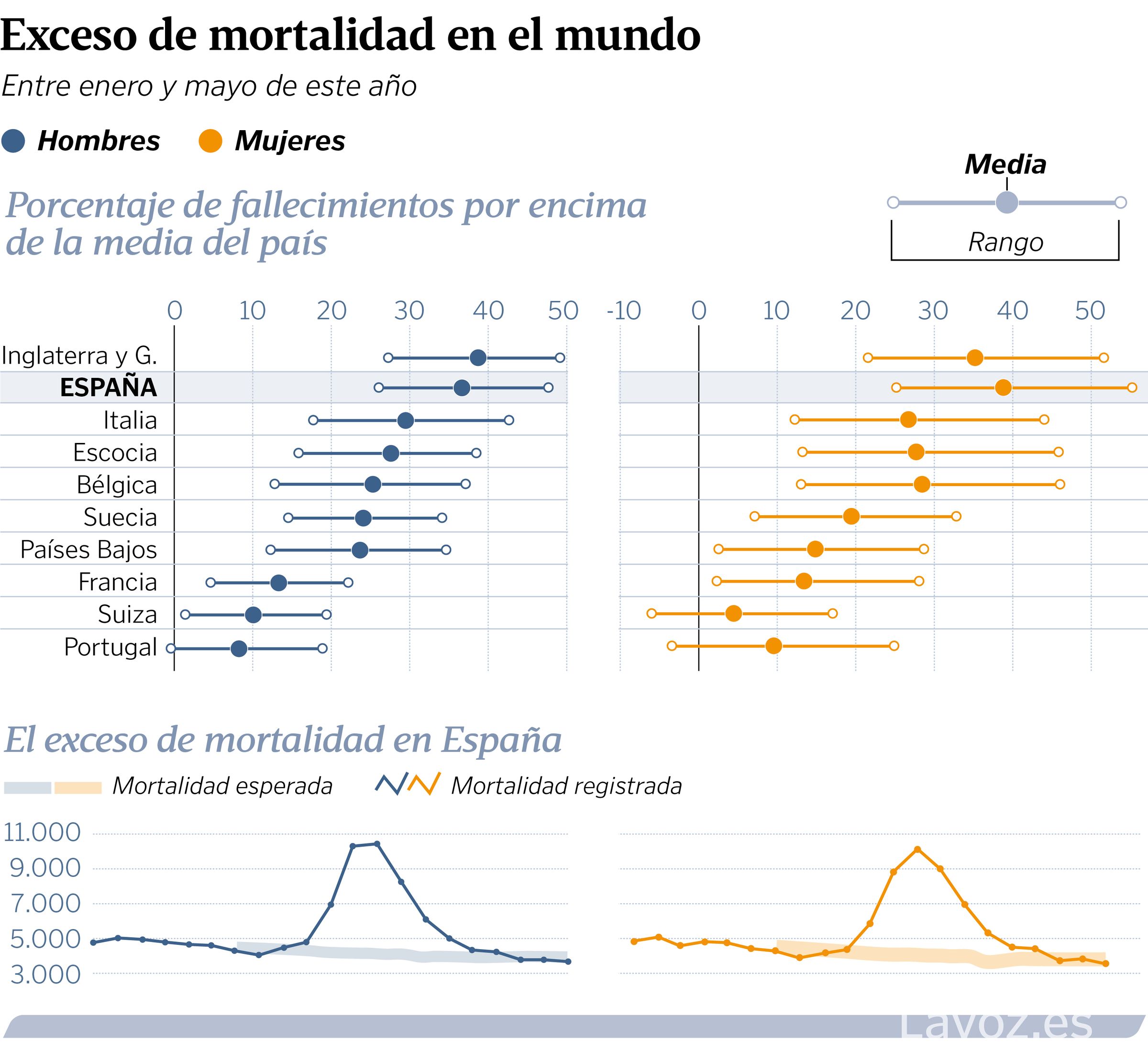 Entre febrero y mayo fallecieron 27.127 personas más de las previstas, un 38 % más, por encima de países con alta incidencia como Reino Unido e Italia