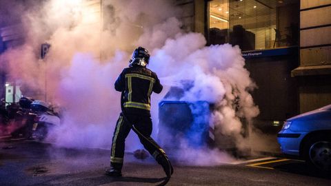 Otras siete personas tuvieron que ser atendidas por los servicios sanitarios. Manifestantes violentos levantaron barricadas, incendiaron mobiliario urbano, saquearon establecimientos comerciales y lanzaron vallas, petardos, botes de humo y objetos contundentes contra los policías