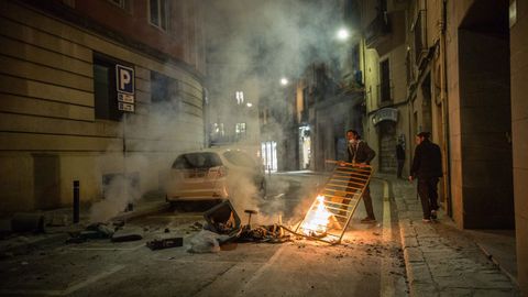 La convocatoria reunió a través de las redes sociales a varios centenares de personas en las calles, muchos de ellos encapuchados y con el rostro oculto que, al terminar la protesta, levantaron barricadas, incendiaron mobiliario urbano, saquearon establecimientos comerciales y lanzaron vallas, petardos, botes de humo y objetos contundentes contra la línea policial de los Mossos. Además de los policías heridos, otras siete personas tuvieron que ser atendidas por los servicios sanitarios.