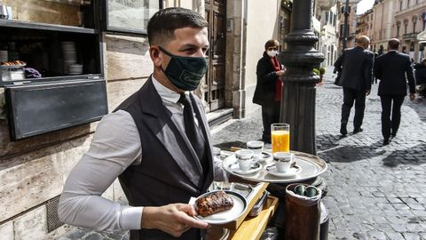 Tras el confinamiento de hace un año, la restauración siempre ha podido mantener su servicio para llevar, incluso cuando las restricciones han sido más duras. Ahora, bares y restaurantes preparan sus mesas solo en las terrazas al aire libre, como decretó la semana pasada el Gobierno italiano.