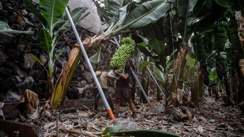 Y es que, diecinueve días después de que el volcán sin nombre entrara en erupción en Cumbre Vieja, en La Palma, su ceniza continúa tiñendo de negro el futuro del plátano canario. Y su influencia parece que va para largo, según explica el gerente de la IGP, un sello de calidad que ampara al 100 % de la producción de las islas. Sus consecuencias, explica Cáceres, no solo afectarán al volumen de producción porque «unas 40 hectáreas de terreno dedicadas a estos cultivos han quedado sepultadas bajo la lava y porque los métodos de riego de otras 400 han sido afectados por la lengua de fuego», también a su calidad porque «la ceniza -punzante como un cuchillo- deja unas cicatrices o rayas rosas en la piel del plátano que hacen que las frutas no cumplan con los estándares marcados por la UE para su comercialización. Aunque estén perfectas para su consumo, no pueden comercializarse por su aspecto externo». La isla de La Palma aporta unos 145 millones de kilos de plátano al año, lo que supone el 35 % de la producción de la IGP.