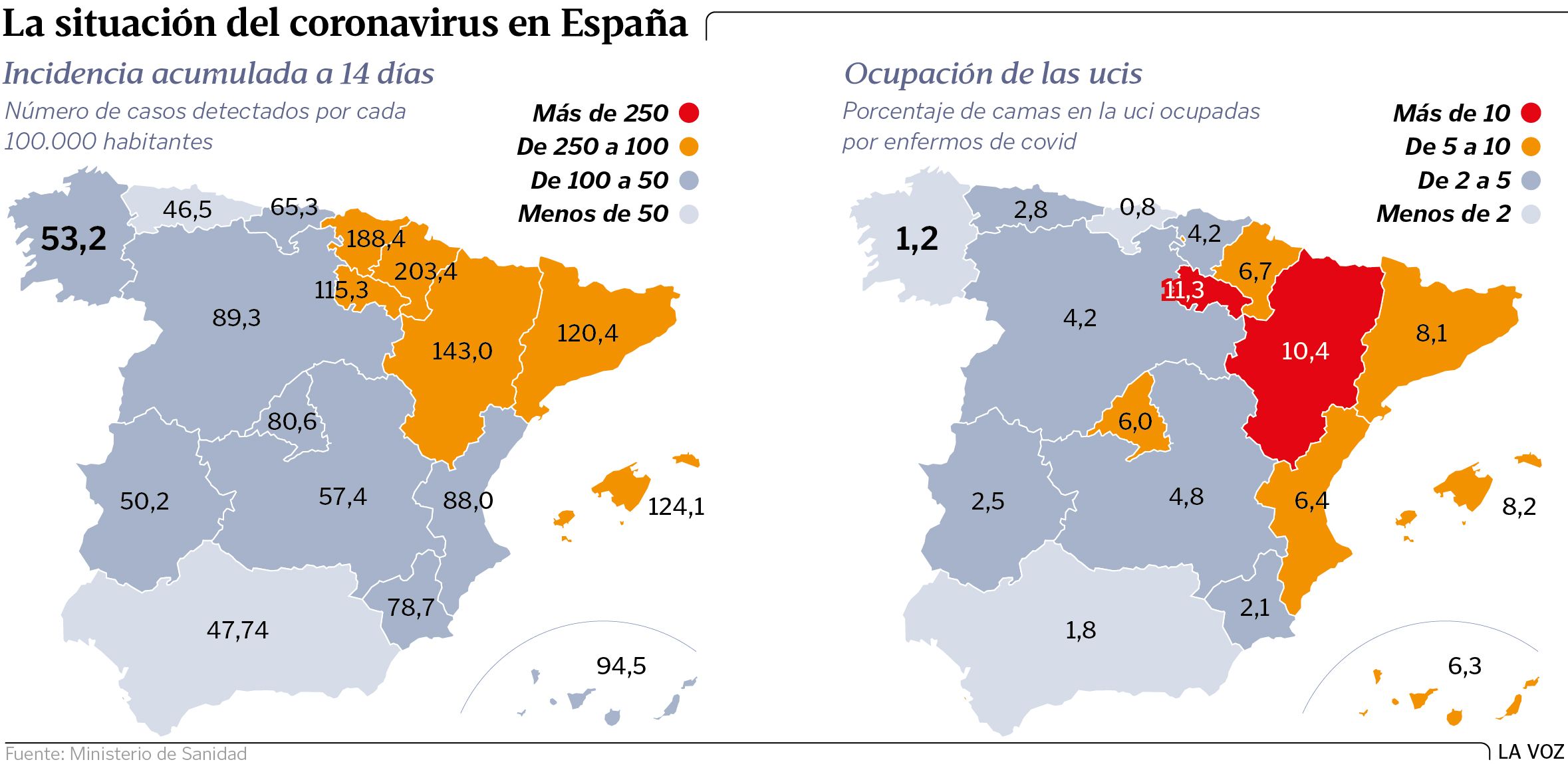 17 nov 2021 . Actualizado a las 09:03 h.En octubre del 2020, con la incidencia nacional del coronavirus por encima de 360 casos por cien mil habitantes, el Gobierno estableció un sistema de niveles para evaluar con criterios epidemiológicos y asistenciales el riesgo de cada comunidad y, en función del mismo, establecer unas u otras medidas. Desde entonces, este semáforo covid ha servido de referencia común, a pesar de que los Ejecutivos autonómicos siempre han tenido en su mano la posibilidad de endurecer los umbrales (nunca flexibilizarlos) en función de sus particulares realidades.