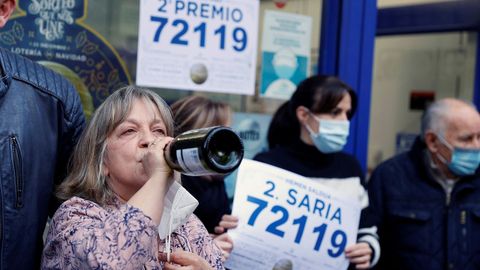 Mari José Berzosa es la propietaria de la administración. Esta mañana lloraba de emoción. Como el resto de loteros había decidido secundar la huelga convocada, pero se ha visto obligada a levantar la persiana «solo para celebrarlo». «Siempre hace ilusión, pero este año más. Únicamente hay algo mejor que dar un premio, y es que se acabe esto de la pandemia», dijo.