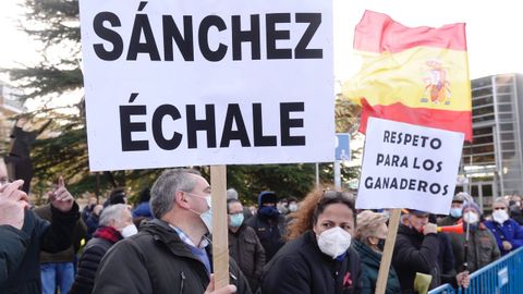 Las organizaciones agrarias Asaja, UPA y Coag, parapetadas tras una pancarta en la que se leía «Garzón, cese o dimisión», habían convocado una protesta para reclamar más respeto para agricultores y ganaderos.