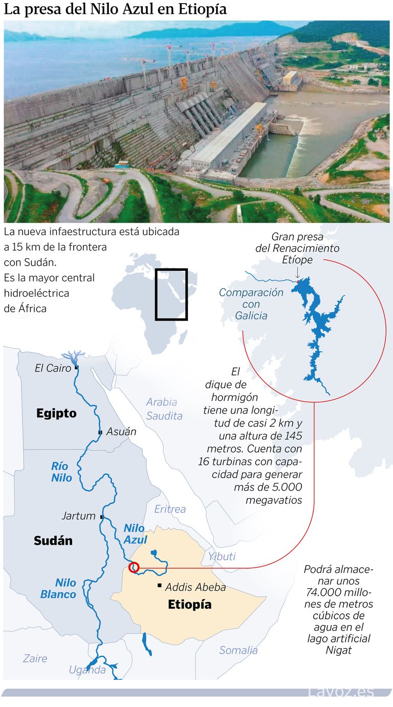 10 sep 2025 . Actualizado a las 05:00 h.La central hidráulica más grande África ya es una realidad en Etiopía. La Gran Presa del Renacimiento es el nuevo símbolo nacional del país, con el que incluso esperan incluso potenciar el turismo. La obra faraónica mide 145 metros de alto y ocupa unos 1.874 kilómetros cuadrados. Y, lo más importante para miles de etíopes, cuenta con una capacidad de generación de 5.150 megavatios. Además, el lago artificial Nigat (amanecer en amárico) tendrá una capacidad para almacenar 74.000 millones de metros cúbicos de agua.