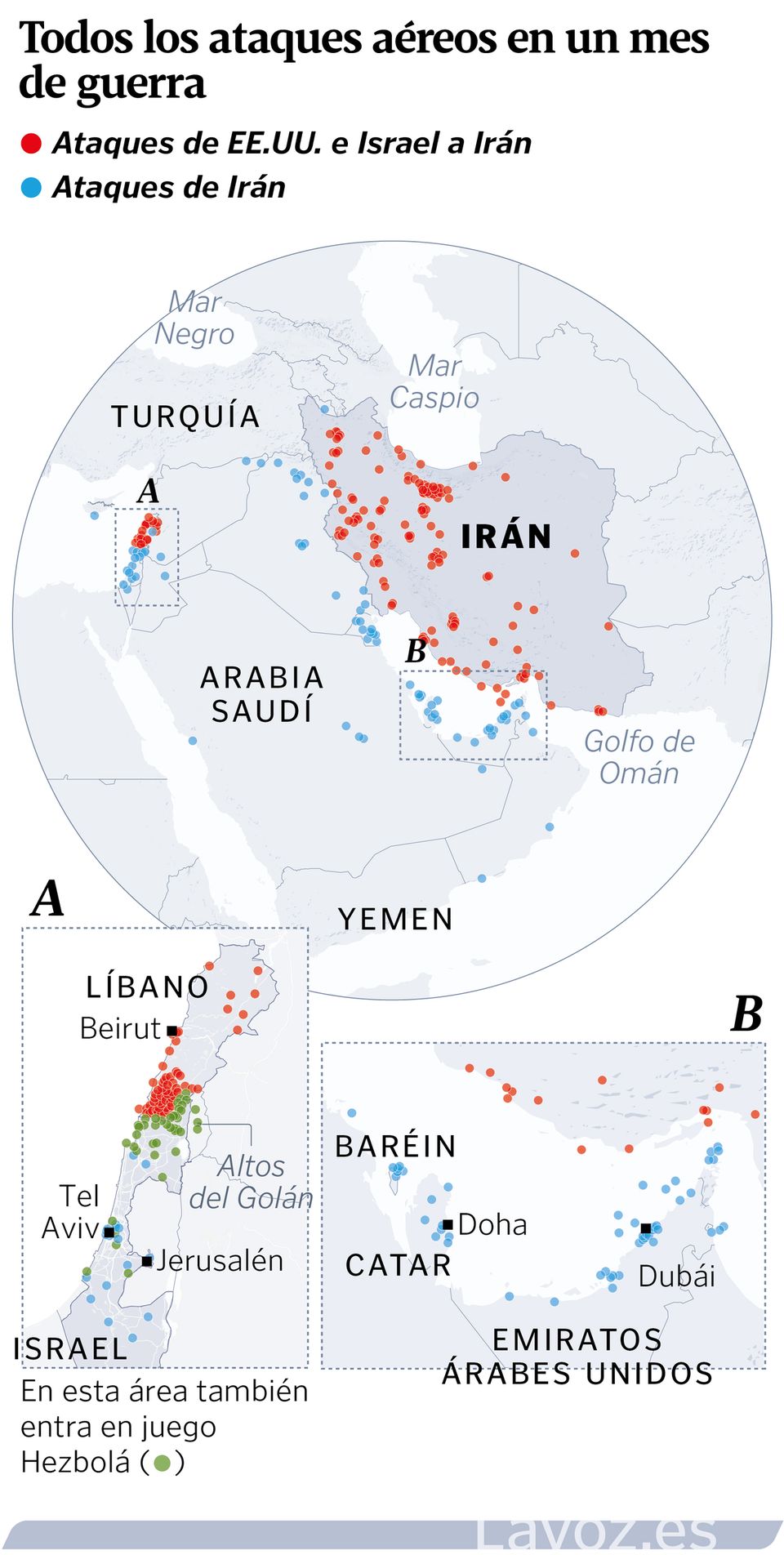 29 mar 2026 . Actualizado a las 21:37 h.Ha pasado un mes desde que el presidente de EE.UU., Donald Trump, anunciara en una grabación a oscuras el inicio de la guerra contra Irán de la mano de Israel. Una agresión que ha sacudido todo Oriente Medio, la economía global y la legalidad internacional. La crisis energética derivada de la misma ha puesto a la comunidad internacional en alarma y pidiendo un proceso de paz que resuelva la guerra. Sin embargo, el proceso diplomático anunciado por la Casa Blanca se hace bajo estricto secreto. En público, Washington, Teherán y Tel Aviv se preparan para una guerra ampliada con más soldados, más despliegue tecnológico y un horizonte que podría englobar operaciones terrestres.