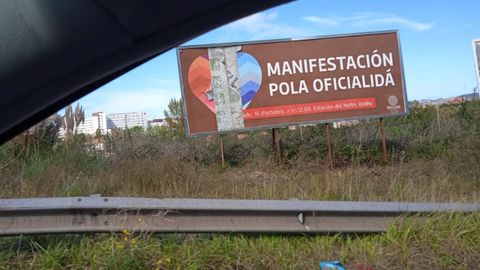 La valla afectada ta asitiada na zona de Buenavista, a la entrada d'Avilés, onde arrancaron una parte del anunciu, segun denunció la XDLA esti llunes y como pue vese nes semeyes que publicaron nes sos redes sociales.