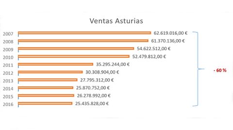 Fruto de lo anterior, el juego del bingo en Asturias es el que menos premios devuelve a sus jugadores (60,3% en Asturias, media nacional 70%), y la que menos modalidades del juego dispone. Todas estas variables son las que originan que el bingo haya perdido en 10 años el 60% de sus ventas, pasando de facturar 62 millones de euros anuales a 25 millones actualmente.