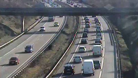 Son decenas los coches que se encuentran atascados en la vía, en una caravana que se extiende hasta cinco kilómetros, después de que se produjera el accidente a primera hora de la tarde. La colisión ha tenido lugar a la altura de la gasolinera de La Pausa en el tramo entre Oviedo y Gijón.