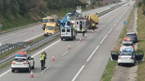 Distintas fuentes apuntan que el camión probablemente se dirigía a la papelera de Ence en Navia. Iba cargado con biomasa forestal. A causa del accidente han permanecido cortados dos carriles de la A-8, uno en dirección a Oviedo y otro en el sentido contrario. La Guardia Civil ha regulado la circulación. Quedó restablecida con normalidad alrededor de las dos y media de la tarde, una vez que los bomberos realizaron «las oportunas tareas de seguridad y normalización de la vía».