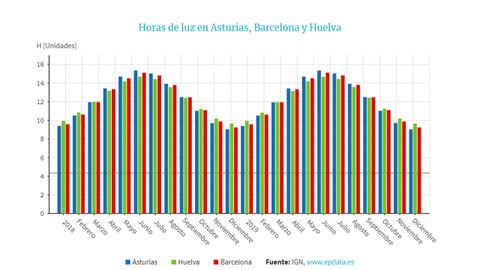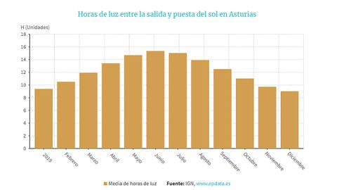 27 oct 2019 . Actualizado a las 16:52 h.El cambio de hora empezó a generalizarse a partir de 1974, a partir de la primera crisis del petróleo, cuando algunos países decidieron adelantar el reloj para aprovechar mejor la luz del sol y consumir así menos electricidad en iluminación. Se aplica como directiva desde 1981 y ha sido renovada sucesivamente cada cuatro años. La diferencia de horas de luz a lo largo en Asturias con el paso de las estaciones varía hasta seis horas, desde las 15 de junio a las 9 de diciembre.