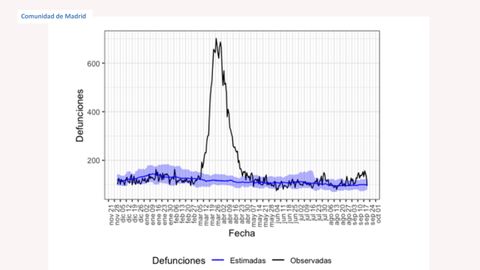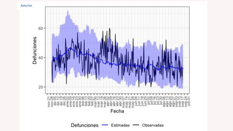 Pese a todo, en la gráfica del MoMo, incluso la correspondiente a las últimas semanas de septiembre, se puede observar que la cifra de muertes de Asturias está por debajo de la estimada, mientras que la de Madrid la supera.