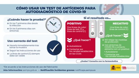 «La toma de muestras es clave —subraya la AEMPS—. Una muestra de mala calidad puede dar lugar a un resultado erróneo. Para evitar que se degrade, debe hacerse el test inmediatamente después de tomarla». Precisan desde Sanidad que la falta de experiencia y pericia de los ciudadanos a la hora de recoger estas secreciones en comparación con la del personal sanitario puede afectar al rendimiento de los test y Moraga-Llop anota que también influye el reactivo, el tipo de test y la sensibilidad que tenga. Insiste en que si se hace muy al principio dela infección, con carga viral muy baja, «es difícil que salga positivo».