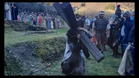Ayer, tras los ensayos pertinentes, los vecinos que se disfrazan como actores volvieron a volcarse en una representación extraordinariamente emotiva, que contó con la participación de la Guardia Pretoriana de Lugo, con el acompañamiento de Percussio Praetoria. En una jornada soleada, Villanueva de Oscos, con su modesta participación, volvió a convertirse en un entrañable punto de referencia de la Semana Santa en la frontera entre Galicia y Asturias.