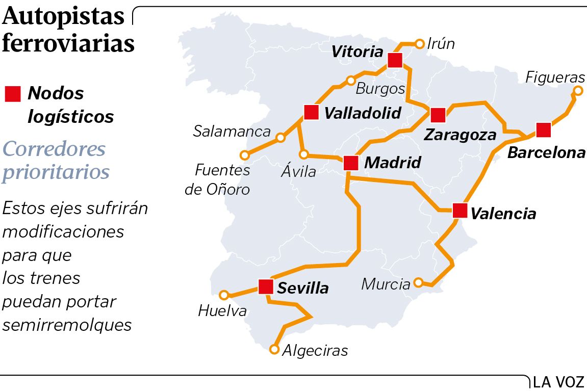 Las autopistas ferroviarias son servicios intermodales que transportan en trenes camiones o sus semirremolques, que después recorren los últimos trayectos por carretera. Exigen ciertas reformas en la infraestructura para adaptarla a los gálibos de estos convoyes. Fuentes del Ministerio de Transportes alegan que el estudio realizado por Ineco —la empresa pública de ingeniería— se basó en otro del 2015 en el que se analizaba la rentabilidad de los servicios con mayor potencial, dando prioridad a los corredores internacionales, tanto el atlántico como el mediterráneo. En aquel momento, el corredor atlántico transeuropeo no se había extendido aún al noroeste de España.