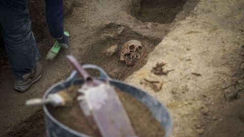 Enterrado uno sobre otro y con un orificio en el cráneo: así aparecieron los cadáveres en una fosa de Celanova en la que se busca a siete asturianos fusilados en 1939