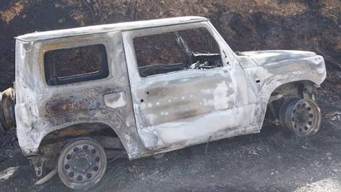 El vehículo de la Guardería de Medio Rural quedó calcinado. La Guardia Civil ha abierto una investigación