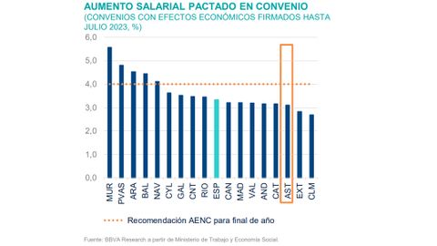 Y con todo, el informe advierte de la relevante pérdida de poder adquisitivo de los salarios en Asturias que podría contraer el consumo. Y no es asunto menor, en Asturias el aumento de los salarios ha sido más pequeño que en el de otras comunidades, de hacho se encuentra a la cola, los trabajadores asturianos se encuentran entre los más perjudicados en las negociaciones de los convenios.