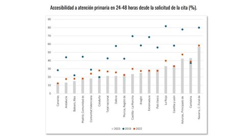 Cada paciente tiene una experiencia particular, pero la estadística, en relación con otras comunidades, sitúa a Asturias entre los territorios en los que un mayor porcentaje de personas que acude a Atención Primaria consigue una cita en 24 ó 48 horas. Es un porcentaje que ha variado en los últimos años pero siempre el Principado se ha situado en los puestos de cabeza. Los datos fueron recogidos por José María Abellán Perpiñán, Fernando Ignacio Sánchez Martínez, Jorge Eduardo Martínez Pérez, Grupo de Trabajo en Economía de la Salud, Universidad de Murcia, en un artículo sobre listas de espera publicado en el el blog especializado en economía Nada es gratis.