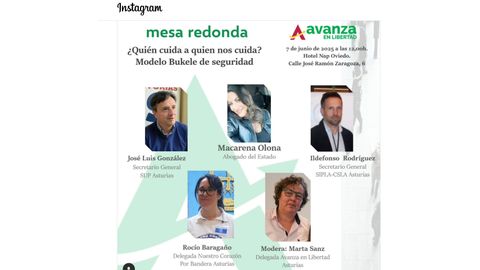 La mesa redonda tendrá lugar el próximo 7 de junio en el hotel Nap de Oviedo y contará con la participación de la exdiputada de Vox, Macarena Olona, y también con la de José Luis González, secretario general de SUP Asturias y además de la de Ildefonso Rodríguez, secretario general de SIPLA-CSLA Asturias. En la mesa también estará una representante de la organización Avanza en Libertad y de Nuestro Corazón por bandera, de Asturias.