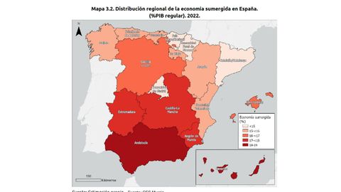 La catedrática de economía aplicada de la Universidad de Oviedo, Begoña Cueto, explica que el grado de economía sumergida en España varía en función de la estructura productiva de las diferentes comunidades autónomas ya que «hay sectores con más propensión a la economía sumergida». Estos son la agricultura, la construcción, la hostelería y los servicios personales. No obstante, los esfuerzos de la administración, en general, y de la Agencia Tributaria, en particular, por frenar la economía no oficial están dando resultados en tanto en cuanto el porcentaje del PIB que supone la economía sumergida ha ido bajando en todas las comunidades.