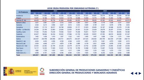 La pérdida de cuadras ha derivado en el último año en una disminución del volumen de leche producida, que se ha reducido en 2.401 toneladas. Así, si en julio de 2024 la leche cruda producida se cifró en 44.420 toneladas, en junio de este año el dato era de 42.019 toneladas. No obstante, cabe indicar que las toneladas producidas a lo largo de los meses que van de una a otra fecha han dibujado una curva con bajadas y subidas ya que, por ejemplo, en febrero de este 2025 el volumen de leche producida cayó hasta las 38.630 toneladas, cuando aún se contabilizaban en el Principado 1.157 explotaciones y, sin embargo, en mayo de este mismo año, fueron 44.647 las toneladas de leche producidas en la región, una cifra superior a la de referencia de julio del pasado año, cuando la cifra de ganaderías ya estaba en 1.143.