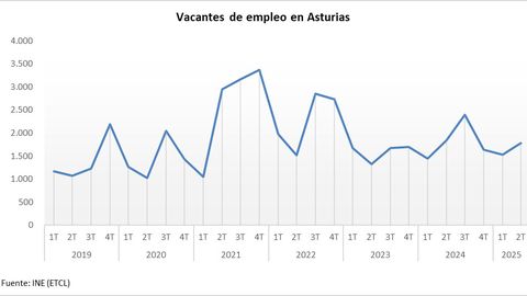 17 sep 2025 . Actualizado a las 12:50 h.Con los datos del segundo trimestre de este año, el Instituto Nacional de Estadística (INE) dio a conocer las cifras de las vacantes de empleo en cada una de las comunidades autónomas y en el caso de Asturias revelan que hay un número notable de puestos sin cubrir, 1.787, en todo caso la evolución de las vacantes en el último lustro indica que se trata de un número relativamente constante y que sólo experimentó un auge singular en el año 2021, todavía bajo el impacto inmediato de la pandemia.