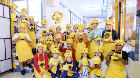 Los más pequeños de la casa están dejando, de manera temporal, a un lado los libros, los cuadernos y los lápices para colgarse el delantal y ponerse al frente de los fogones. Gracias a la Escuela de Chefs, impulsada por Alimerka, los menores se están convirtiendo en auténticos cocineros. Y mientras que preparan ricos platos aprenden la importancia de consumir productos de proximidad, fomentar hábitos de vida saludable, cuidar el medio ambiente y reducir el desperdicio alimentario.