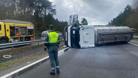 30 ene 2026 . Actualizado a las 15:16 h.El conductor de un camión ha resultado herido leve este viernes tras sufrir un accidente y volcar con su vehículo que transportaba leche, en la autovía A-8.
