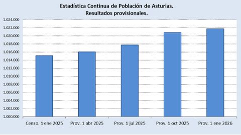 Con el avance de las cifras del censo del año pasado, Sadei hacía recuento para indicar que «la estimación del INE a partir de la Estadística Continua cifra la población provisional de Asturias a 1 de enero de 2026 en 1.021.733 personas, 6.605 más que las censadas a 1 de enero del año anterior».