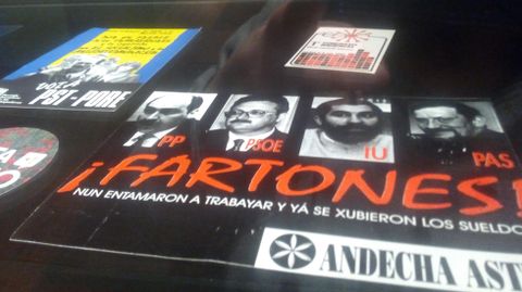 20 dic 2016 . Actualizado a las 21:03 h.La primera pegatina que se editó, probablemente, después de la muerte de Franco en Avilés y que es de UGT, varias contra las privatizaciones de servicios en el municipio, en defensa del puente de San Sebastián o de la antigua Ensidesa, sin contar numerosas de candidatos electorales. Son parte de los tesoros que tiene Miguel Sánchez y que lleva guardando desde hace 41 años y que desde hoy se pueden ver en el palacio de Valdecarzana de Avilés. Son una pequeña, minúscula, muestra de lo que posee, pero sirven a modo de repaso de la historia del Principado, en especial en la vertiente política. «Las distintas Asturias en pegatinas» repasa en 250 ejemplares acontecimientos sociales y políticos de la región, aunque la colección de Sánchez abarca a toda España. Esta selección la ha dividido en seis temáticas: elecciones, partidos políticos, sindicatos, género (feminismo y defensa de la sexualidad), ecologismo y la Asturias de protesta, como él y sus amigos la han definido.