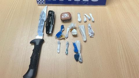 Los agentes intervieron en la calle El Cruce, en Llaranes, el turismo conducido por el hombre, entre cuyas pertenencias resultaron intervenidos varias dosificaciones conteniendo sustancia estupefaciente, así como varias armas blancas.