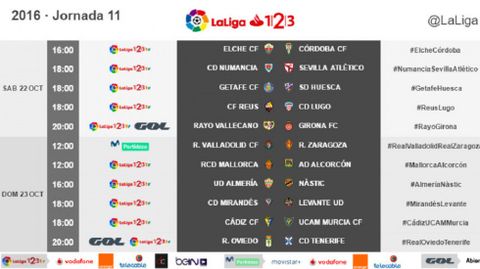 27 sep 2016 . Actualizado a las 11:50 h.La LFP ha dado a conocer esta mañana los horarios de los enfrentamientos correspondientes a la jornada 11 de la Liga 123.