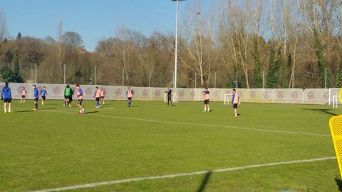 El entrenamiento se dividió en dos equipos, uno de naranja y otro de amarillo. Los de naranja tuvieron varias charlas con el entrenador, dando pistas de que este podría ser el elegido para jugar esta jornada. Las posiciones en el centro del campo y en la delantera no están claras, pero una defensa formada por Diegui, Varela, Christian, Verdés y David Fernández es clara candidata a ser la que veamos en Almería.