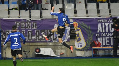 El delantero murciano fue autor de los dos goles de la victoria ante el Girona. El primero en un cabezazo en el segundo palo tras córner de Néstor Susaeta, y el segundo de disparo raso y cruzado a pase de Diegui. El 9 azul cuajó un gran partido ante el segundo clasificado de la Liga 123.