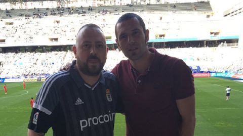 Jamie Claphman, aficionado inglés y uno de los 24 «shareholders» oviedistas que acudió este fin de semana al Carlos Tartiere, se fotografíó con Cervero en las gradas del Carlos Tartiere y compartió este momento desde su perfil de Twitter.